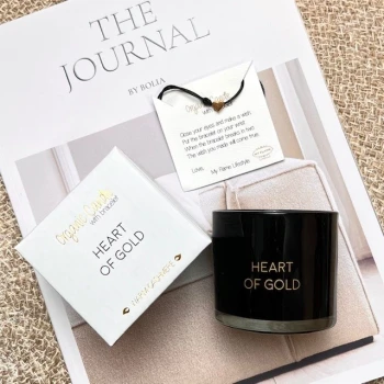 Deze biologische sojageurkaars heeft kristallen voor harmonie, evenwicht, voorspoed, geluk en welvaart.